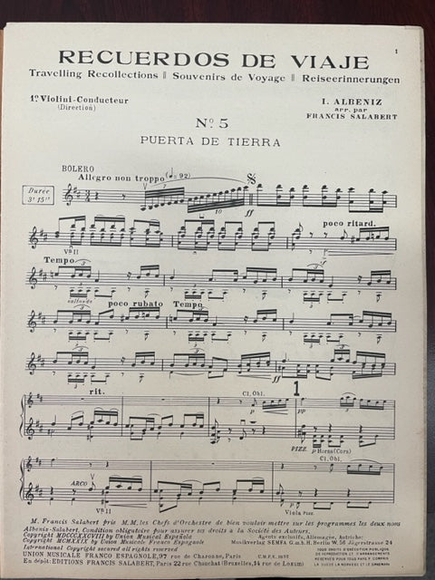 Isaac Albeniz Recuerdos de viaje n° 5: Puerta de Tierra (Bolero) conducteur et parties