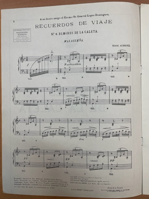 Isaac Albeniz Rumores de la Caleta : Malaguena - N°6 des Recuerdos de Viaje souvenirs de voyage