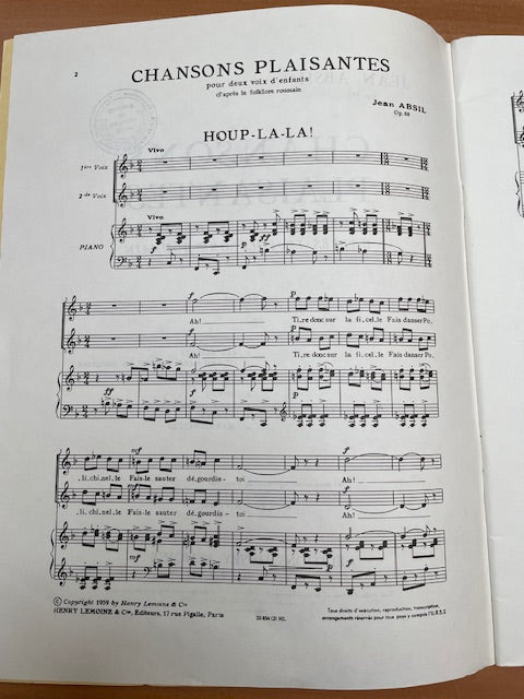 Jean Absil Chansons plaisantes d'après le folklore roumain op.88 - 1er recueil
