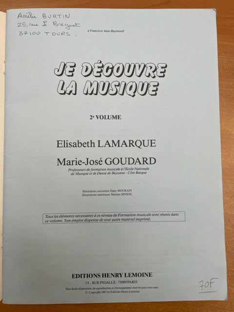 Je découvre la musique - Volume 2 Elisabeth Lamarque et Marie-José Goudard