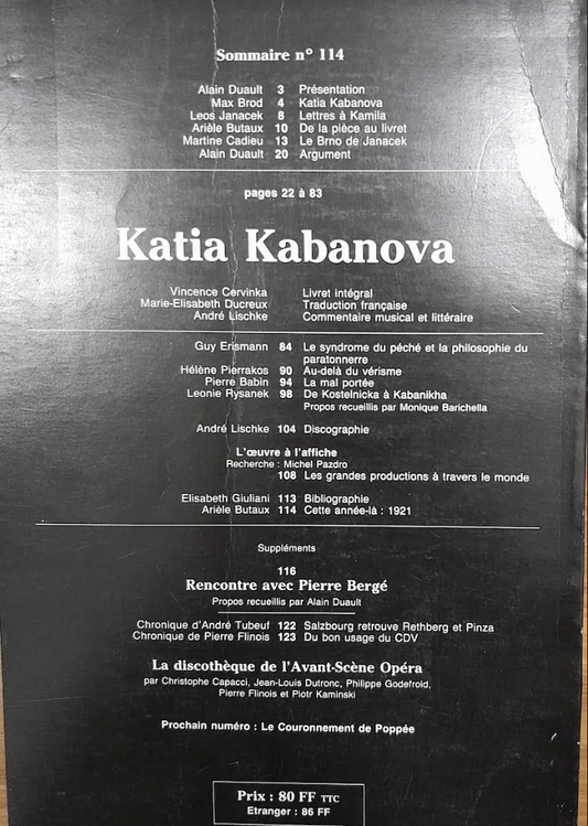 Janacek Katia Kabanova Revue "Avant-scène" Opéra n° 114