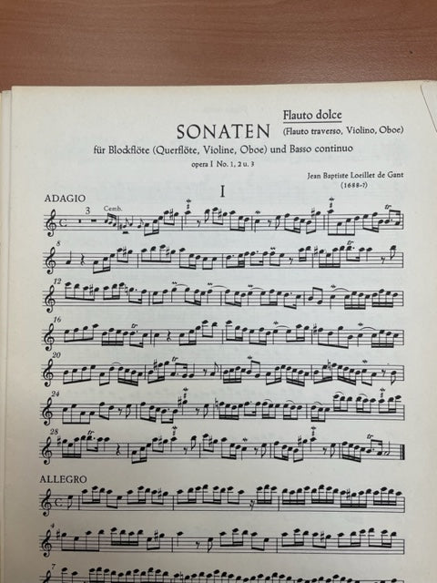 Jean Baptiste Loeillet Sonaten Volume 1 : Op. 1 N° 1-3 pour Flûte à bec alto (ou flûte) piano