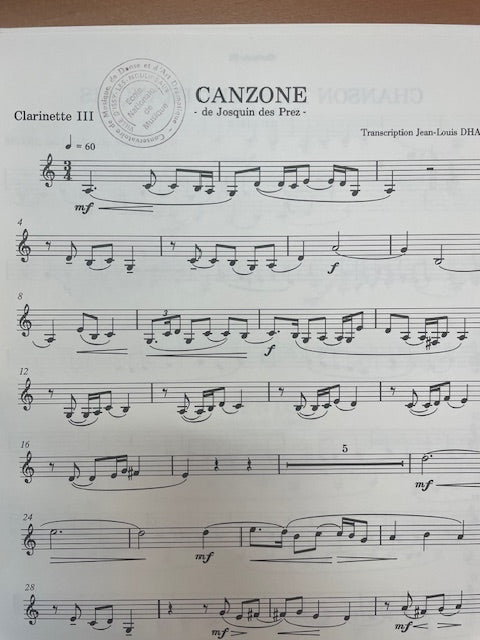 Jan Ockeghem Restitution et adaptation 1e recueil pour quatuor de clarinettes