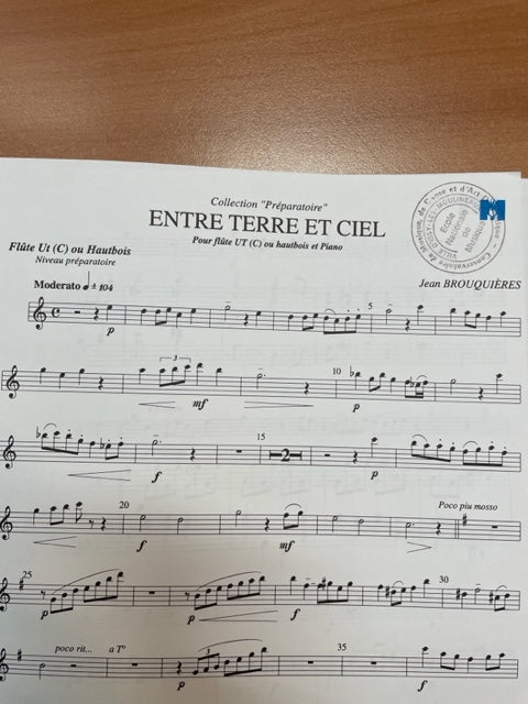 Jean Brouquières Entre terre et ciel partition pour flute ou hautbois et piano