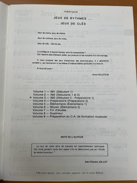 Jean Clement Jollet Jeux de rythmes... et jeux de clés vol 3: initiation musicale 3