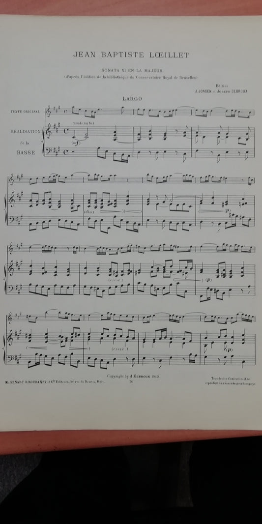 Jean Baptiste Loeillet Sonate en la majeur pour violon et piano