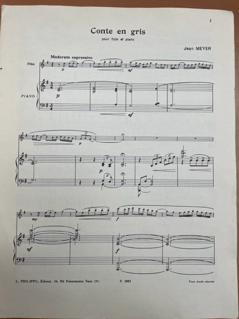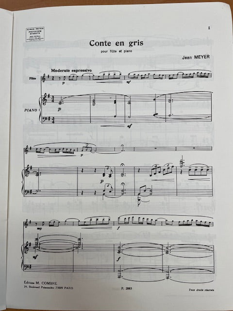 Jean Meyer Conte en gris partition pour flute et piano