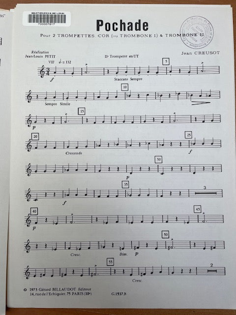 Jean Creusot Pochade 2 trompettes, trombone et cor