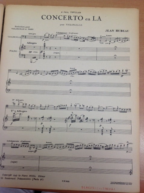 Jean Hubeau Concerto en La Mineur partition pour violoncelle et accompagnement piano