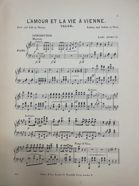 Karl Komzak L'amour et la vie à Vienne, Valse partition piano