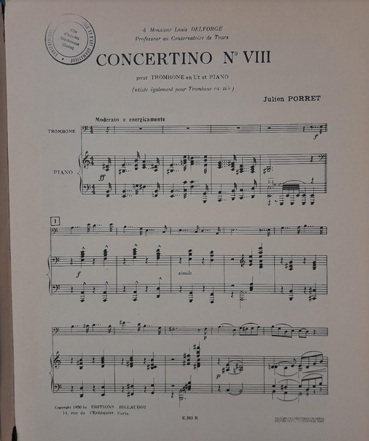 Julien Porret Concertino n° 8 pour trombone en ut et piano
