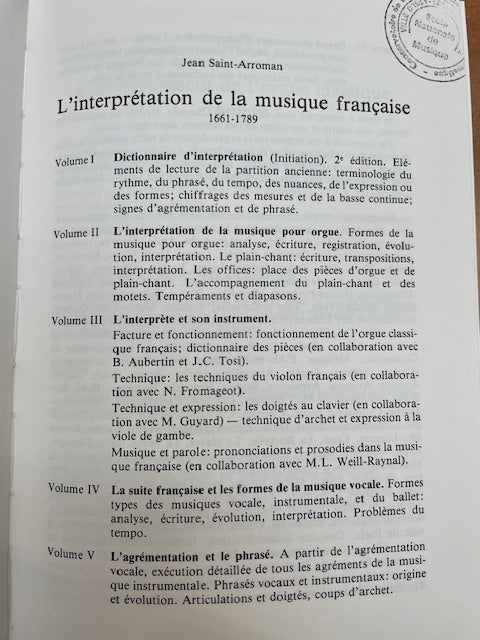 L'interprétation de la musique pour orgue 1661-1789 livre de Jean Saint-Arroman