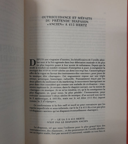 L'oreille absolue et le diapason dit baroque livre de Gérard Zwang