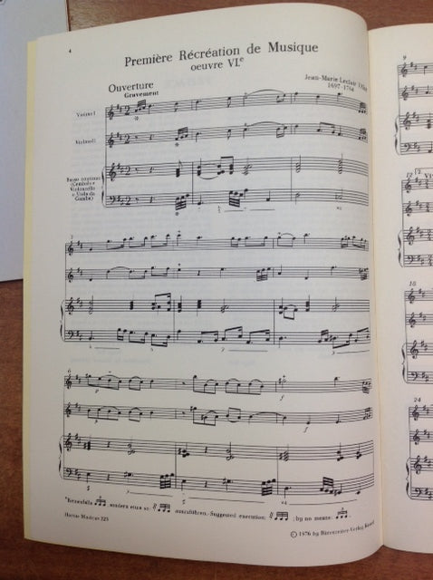 L'ainé Leclair : 1ère récréation de musique opus VI pour 2 violons et basse continue