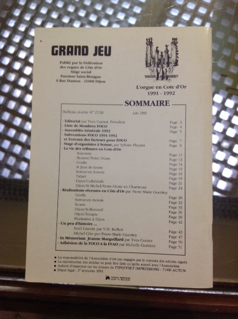 L'orgue en Côte d'Or (1991 - 1992) Bulletin sur l'orgue
