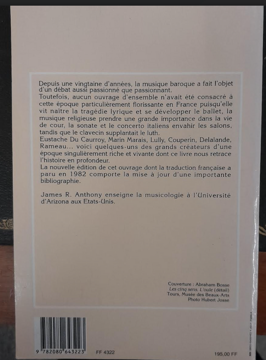 La musique en France à l'époque baroque livre de James Anthony