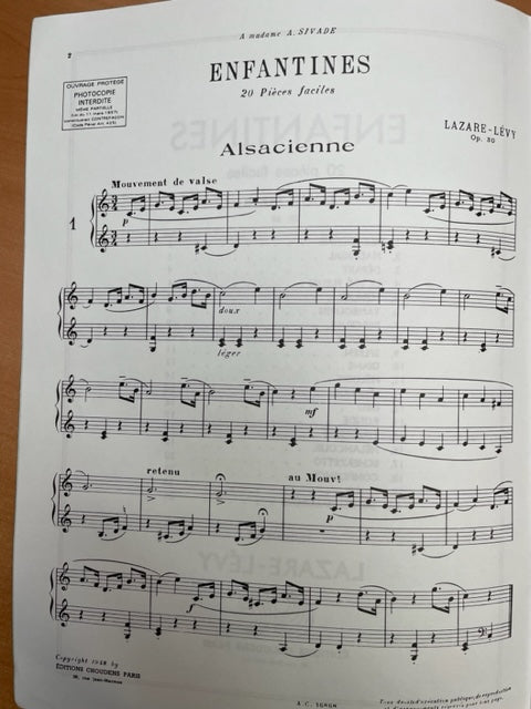 Lazare Lévy Enfantines 20 pièces faciles pour piano