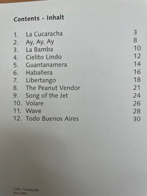 Latin themes for cello : 12 standards - Pas de CD inclus