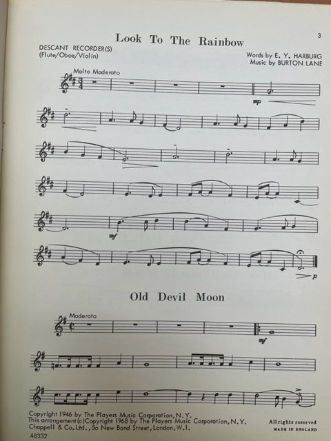 Lane Burton Finian's Rainbow selection for descant recorder and piano with voice and guitar optional