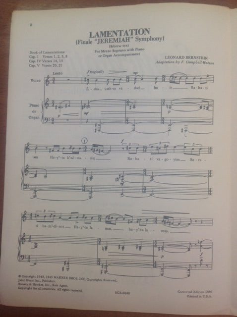 Leonard Bernstein Lamentation, finale "Jeremiah" Symphony for mezzo soprano et piano