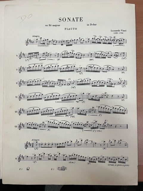 Leonardo Vinci Sonate pour flute et basse continue en ré majeur