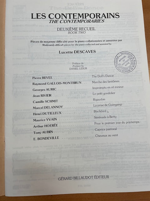 Les contemporains 2e recueil: Auric, Rivier, Dutilleux, Yvain, Aubin pour piano