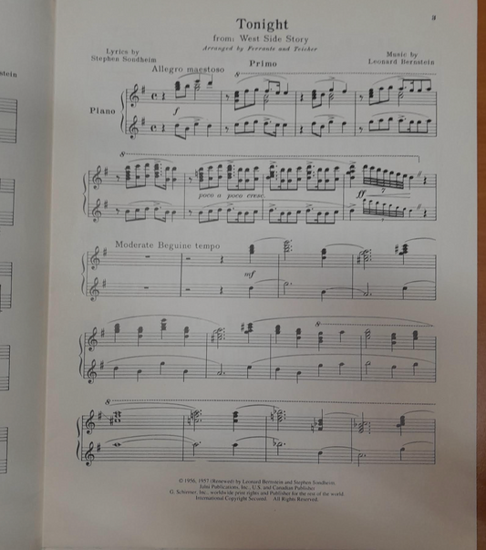 Leonard Bernstein Tonight, extrait de West side Story pour piano à 4 mains