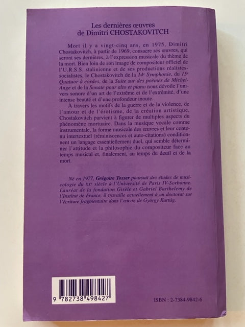 Les dernières oeuvres de Dimitri Chostakovitch, livre de Grégoire Tosser