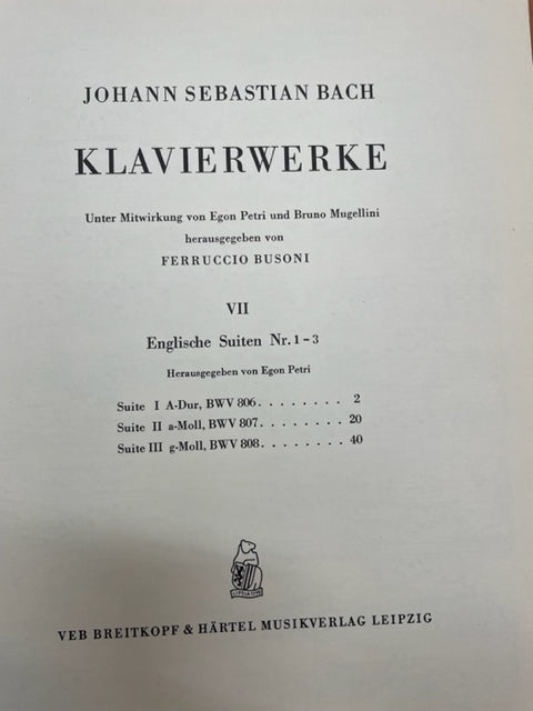 Bach J.S. Klavierwerke vol VII: English Suites pour piano n° 1 - 3 (BWV 806 - 808)