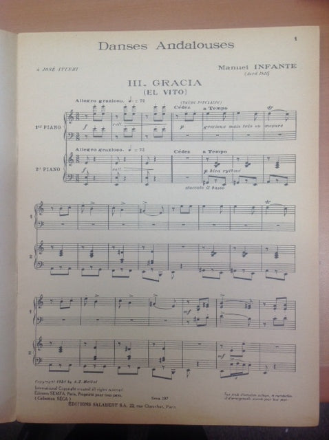 Manuel Infante Danses Andalouses n°3 Gracia partition pour 2 pianos