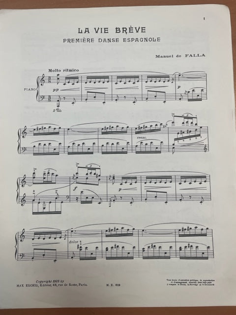 Manuel De Falla 2 Danses espagnoles, tirées de La vie brève partition piano