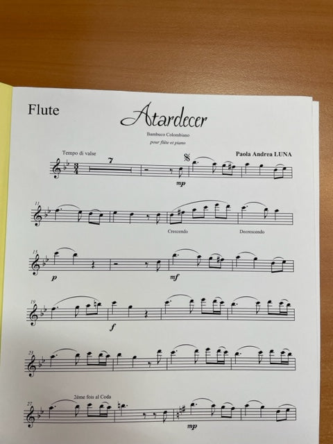Luna Paola Andrea Atardecer Bambuco Colombiano partition pour flute et piano