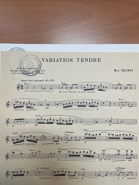 Marc Delmas Variation tendre partition pour Clarinette en si et piano