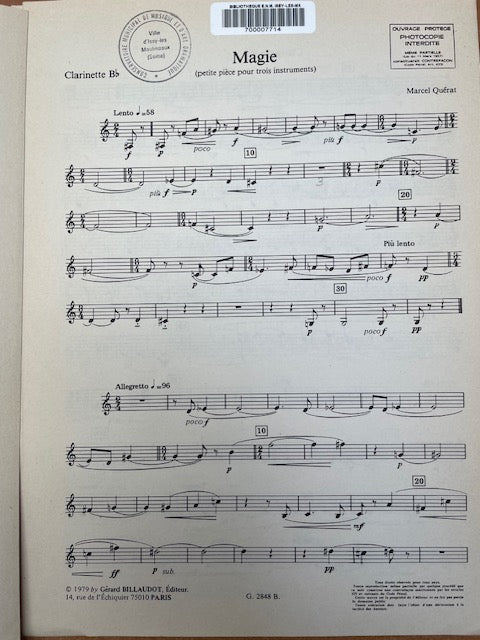 Marcel Quérat Magie - petite pièce pour 3 instruments