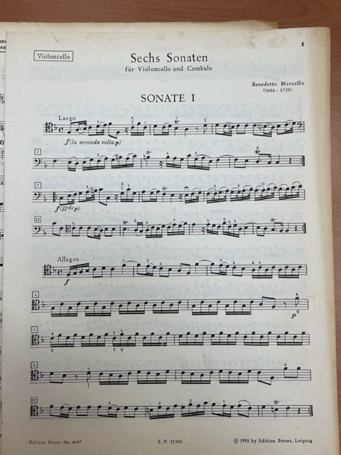Marcello Sechs sonaten pour violoncelle et piano ou clavecin