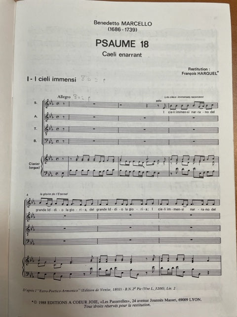Marcello Benedetto Psaume 18 - Caeli enarrant pour Soli SATB et Choeur Mixte