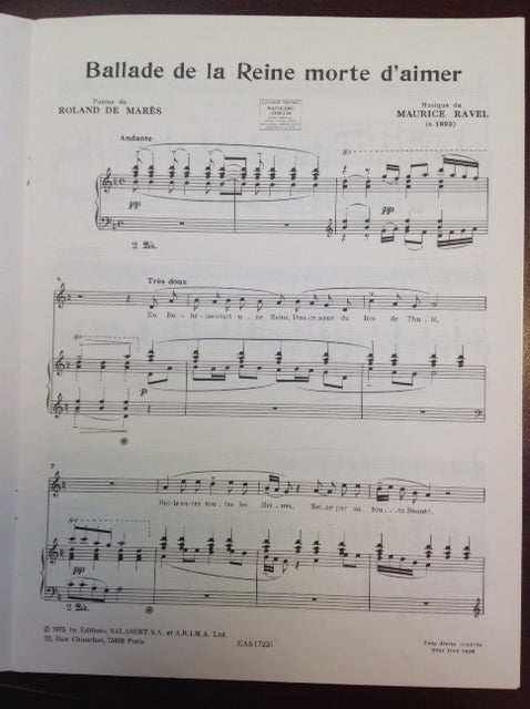 Maurice Ravel Ballade de la Reine morte d'aimer partition pour voix et piano