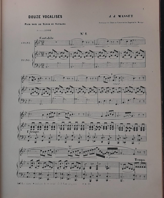 Masset 12 vocalises pour voix de ténor ou soprano avec accompagnement de piano