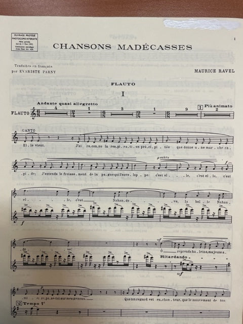 Maurice Ravel Chansons madécasses pour chant, flûte, violoncelles et piano