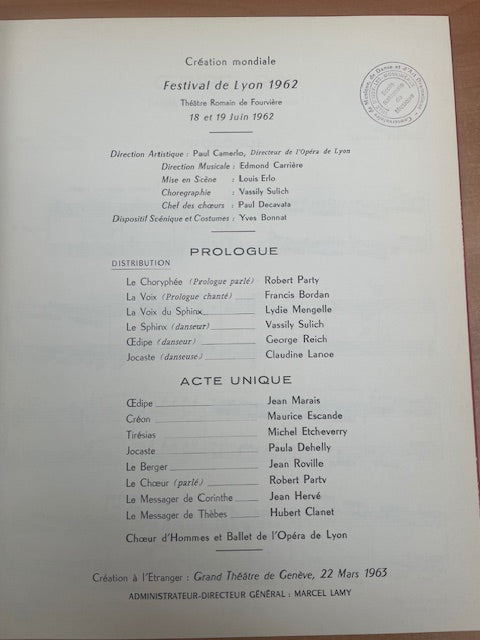 Maurice Thiriet Oedipe-roi réduction piano chant