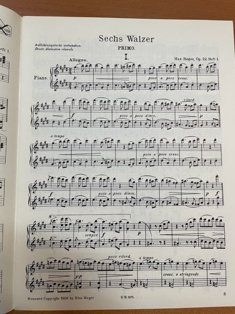 Max Reger 6 Valses opus 22 pour piano à 4 mains