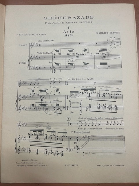 Maurice Ravel Shéhérazade - 3 Poèmes de Tristan Klingsor pour voix moyenne et piano