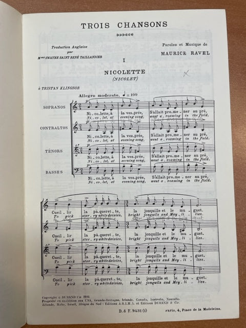 Maurice Ravel Trois chansons pour choeur mixte sans accompagnement