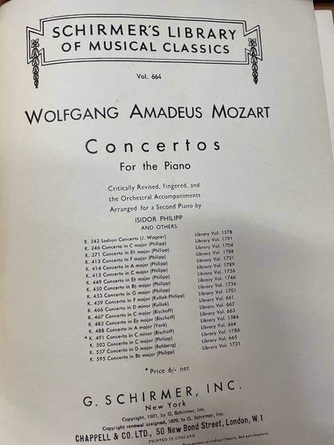 Mozart Concerto en do mineur KV 491 réduction pour deux pianos