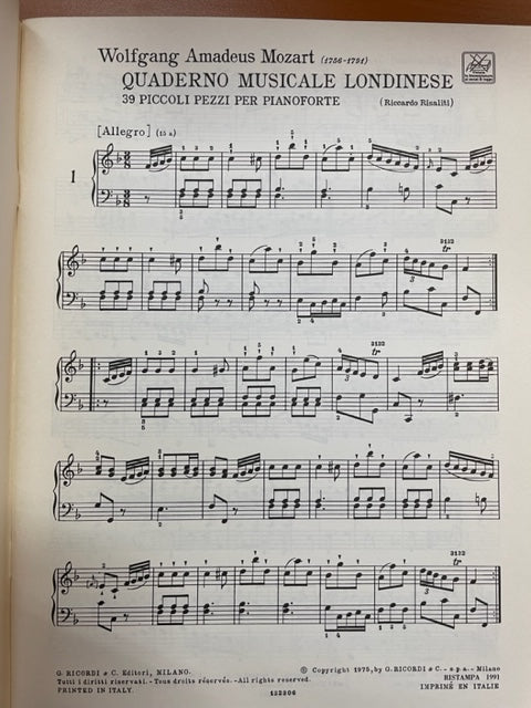 Mozart 39 little pieces for piano - London Musical Notebook partition piano