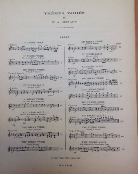 Mozart Oeuvres complètes pour volume 3 Thèmes variés partition piano