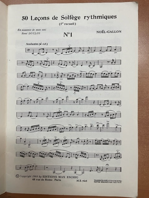 Noël Gallon 50 leçons de solfège rythmique, 1er recueil (n°1 à 25)