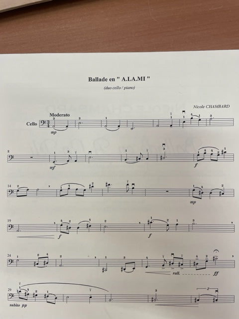 Nicole Chambard Ballade en A - La - Mi pour violoncelle et piano