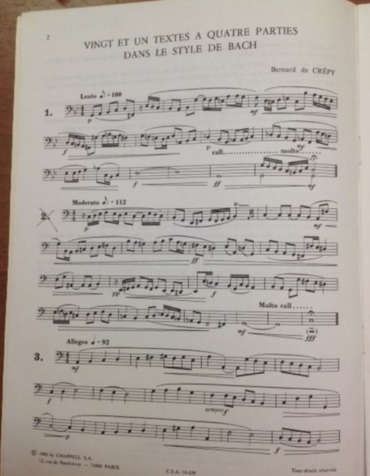 Bernard De Crépy 21 textes à 4 parties dans le style de Bach