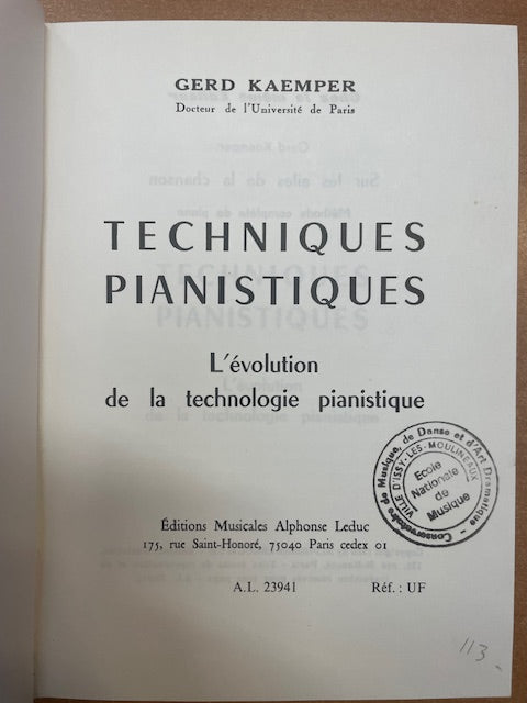 Techniques pianistiques : évolution de la technique pianistique livre de Gerd Kaemper